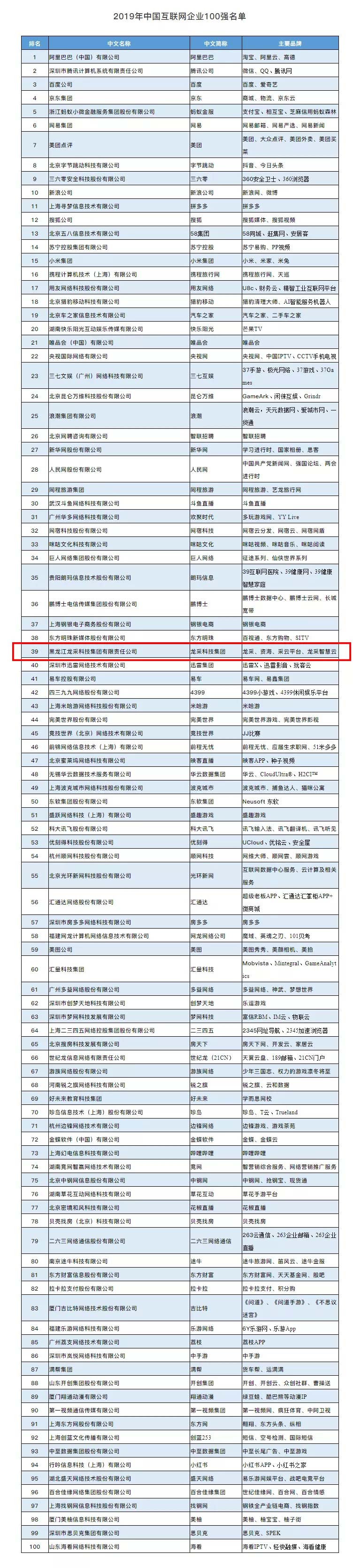 龍采科技集團(tuán)以其卓越的技術(shù)研發(fā)實(shí)力及創(chuàng)新能力,一舉躍升至中國互聯(lián)網(wǎng)百強(qiáng)榜單第39位,系黑龍江省唯一入選企業(yè),這也是龍采科技集團(tuán)連續(xù)第五年躋身百強(qiáng)榜單。2015年第88位、2016年第86位、2017年第49位、2018年第44位、2019年第39位!五年來,龍采用實(shí)力向客戶向市場證明著自己的專業(yè)與務(wù)實(shí),一年一個堅(jiān)實(shí)的腳印,穩(wěn)步向著美好的互聯(lián)網(wǎng)愿景邁進(jìn)。